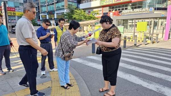 [금요저널] 의정부시 의정부2동주민센터는 6월 26일 의정부2동 주민자치회가 2024년 자치계획 실행사업의 일환으로 ‘의정부 서부역 대각선 횡단보도 설치’ 홍보 캠페인을 실시했다.