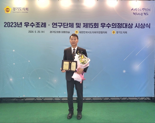 [금요저널] 경기도의회 농정해양위원회 강태형 의원이 ‘2023년 경기도의회 우수조례·연구단체 및 제15회 우수의정대상 시상식’에서 우수조례상을 수상했다.