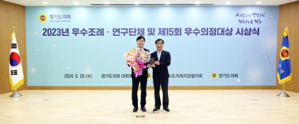우수의정대상은 대한민국시도의회의장협의회가 전국 광역의원 가운데 주민의 삶과 질 향상 및 지역발전에 기여한 의원을 선정해 수여하는 상이다.
