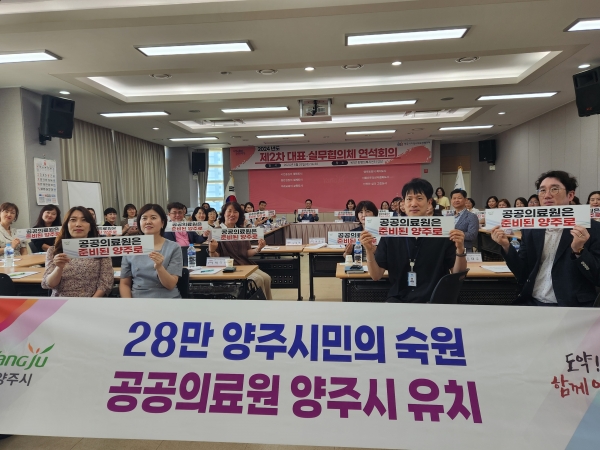 대표·실무협의체 위원 등 참석자 모두는 경기북부 의료공백을 해소하고 양주시민의 건강권과 생명권이 보장될 수 있도록 공공의료원이 양주시에 꼭 유치되기를 기원하며 피켓을 들고 구호를 외쳤다.