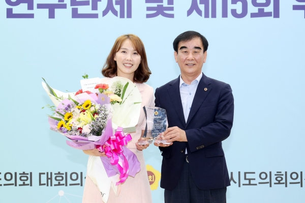 [금요저널] 이인애 경기도의원이 26일 경기도의회 대회의실에서 열린 ‘대한민국시도의회의장협의회 우수의정대상 시상식’에서 우수의정대상을 수상했다.