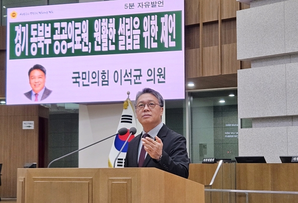 [금요저널] 경기도의회 문화체육관광위원회 이석균 의원은 27일 제375회 4차 본회의 5분 자유발언을 통해 ‘경기 동북부 공공의료원’ 설립을 위한 제언과 함께 유치의 당위성을 역설했다.