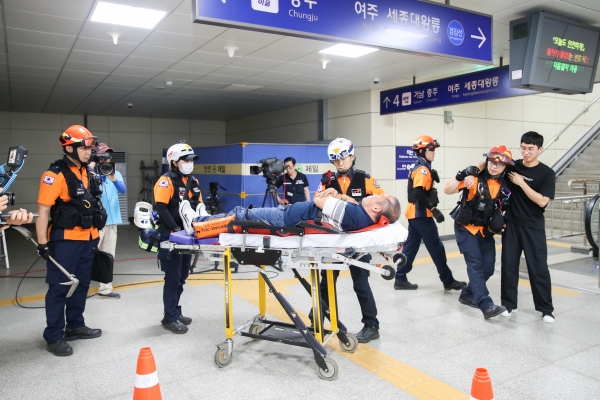 비상벨을 이용한 관리주체인 부발역 직원으로의 신고를 시작으로 직원의 신속한 상황 전파, 초기 대응, 119구조대의 현장 출동, 구조활동 등 단계별로 훈련이 실시됐다.