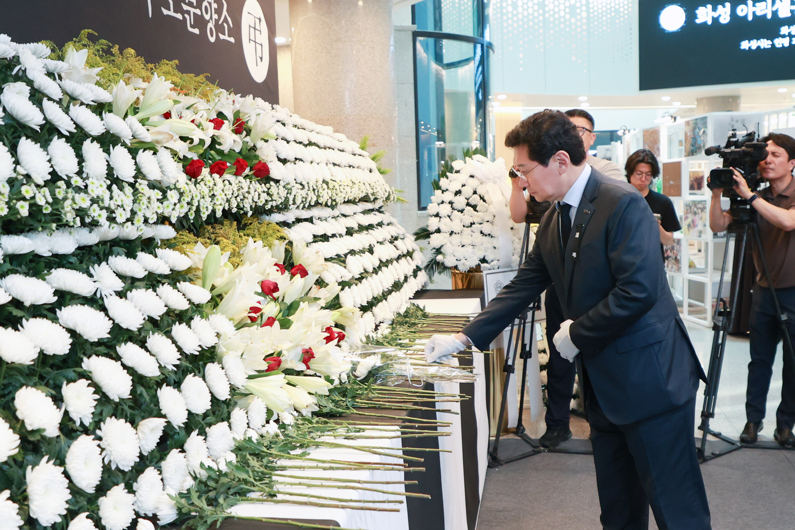 이 시장은 헌화 뒤 정명근 화성시장을 만나 애도와 위로의 뜻을 전했다.