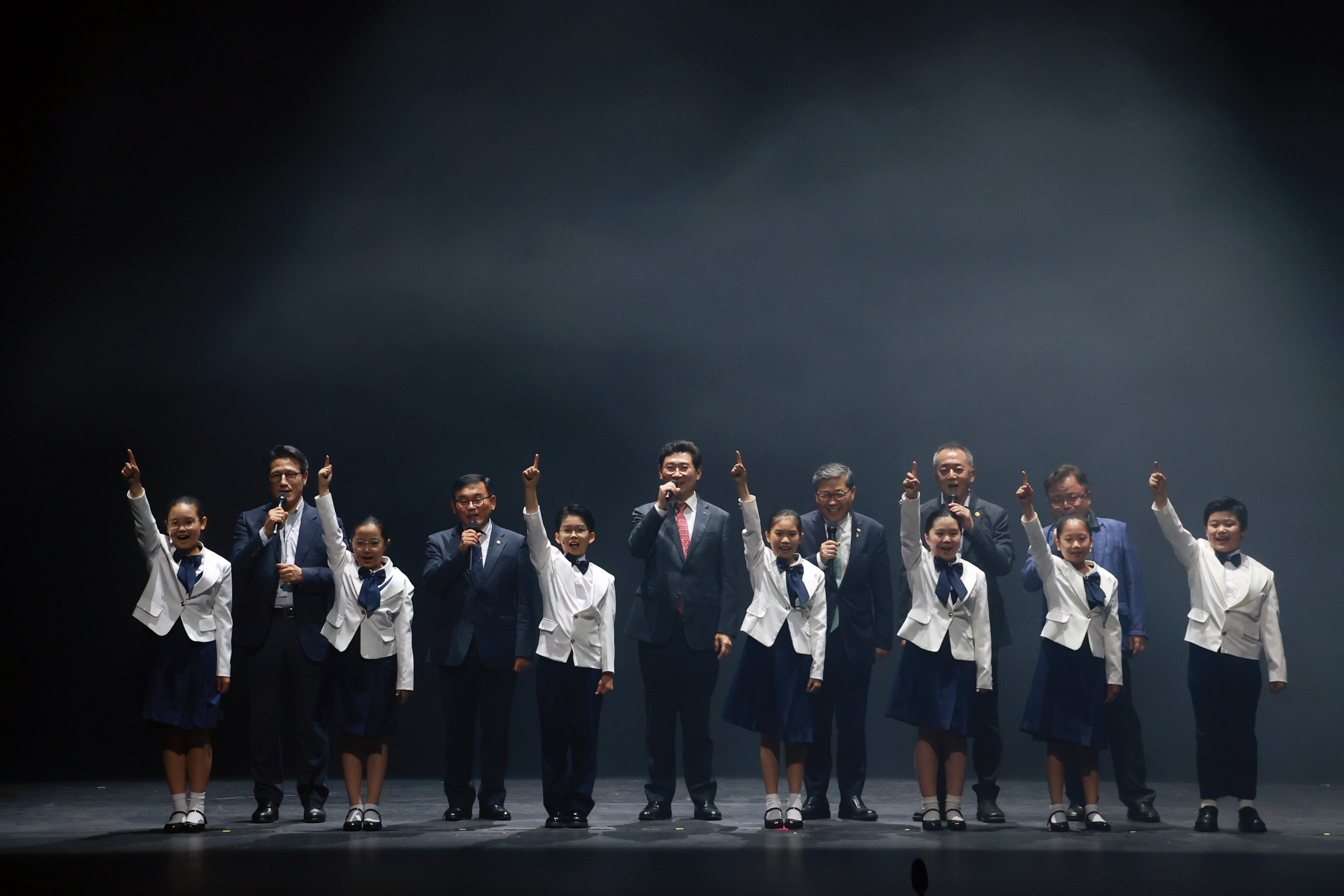 용인시립소년소녀합창단과 리틀용인, 이륙뮤지컬컴퍼니, 키즈동탄으로 구성된 합창단원들이 부른 ‘아름다운 강산’은 용인공연예술연구원의 화려한 춤사위와 어우러지면서 관객들에게 큰 박수를 받았다.