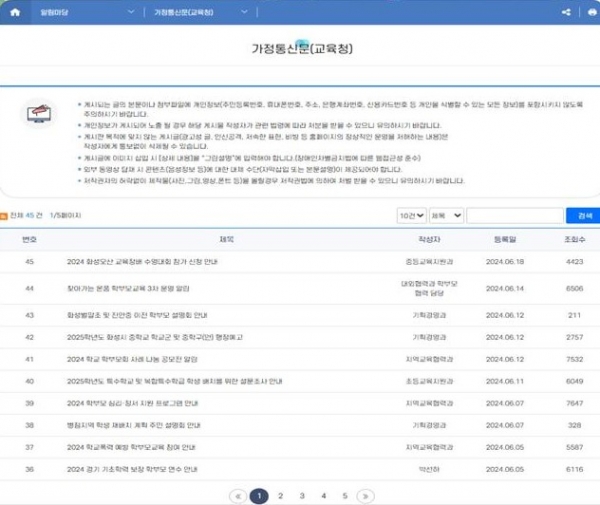 [금요저널] 경기도교육청이 7월부터 학부모 공통 가정통신문 일괄 발송을 전면 시행해 학교의 업무 부담을 경감한다.