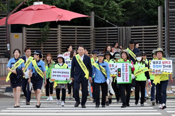 김찬진 청장은 서림초 주변 통학로에서 인천남부교육지원청, 송림지구대, 중부모범운전자회, 인천동부 녹색어머니회, 서림초등학교 학부모회 등 유관기관과 합동으로‘어린이 통학로 교통안전 캠페인’을 진행했다.