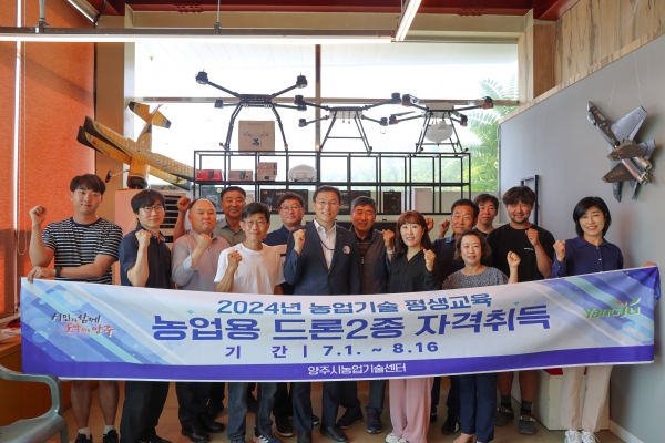 [금요저널] 양주시는 기후변화 대응 병해충 방제 등 농업용 드론 활용 증대를 통해 노동력 및 농가경영비 절감을 위한‘2024년 농업기술 평생교육’개강식을 가졌다고 1일 밝혔다.