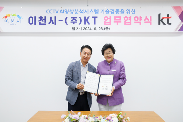 [금요저널] 이천시는 ㈜KT와 ‘CCTV AI 영상분석시스템 기술검증’을 위한 업무협약을 28일 체결했다.