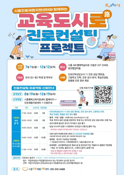 [금요저널] 시흥시는 시흥진로체험지원센터와 함께 ‘2024 시흥 교육도시로 진로 컨설팅 프로젝트’를 시흥ABC행복학습타운에서 오는 8월 19일부터 진행하며 7월 1일부터 신청을 받고 있다.