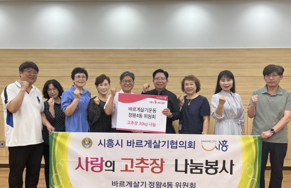 [금요저널] 바르게살기운동 정왕4동 위원회는 지난 6월 29일 관내 취약계층 30가구를 대상으로 사랑의 고추장 나눔 활동을 진행했다.