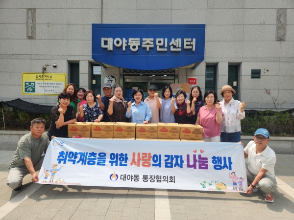 김근선 대야동 마을자치과장은 “무더위 속에서 어려운 이웃을 위한 마음 하나로 감자를 전달해 준 통장협의회 통장들에게 감사하다 땀 흘려 얻은 값진 수확물인 만큼, 어려운 이웃들에게 잘 전달되도록 하겠다”고 밝혔다.