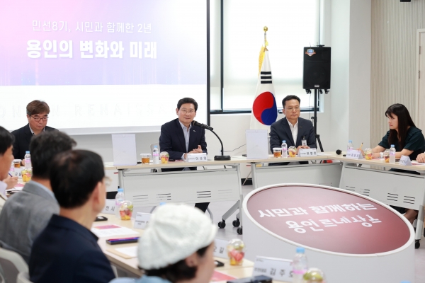 [금요저널] 이상일 용인특례시장은 1일 오후 수지구 죽전3동과 동천동에서 각각 주민과의 소통간담회를 열어 시의 발전상을 소개하고 지역 현안을 논의했다.
