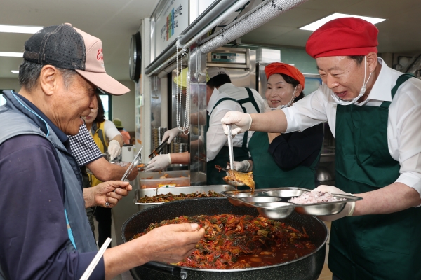 이어 가평군노인복지회관을 찾아 경로식당 배식봉사와 오찬을 함께 하면서 어르신들과 현장소통을 늘리는 시간을 가졌다.