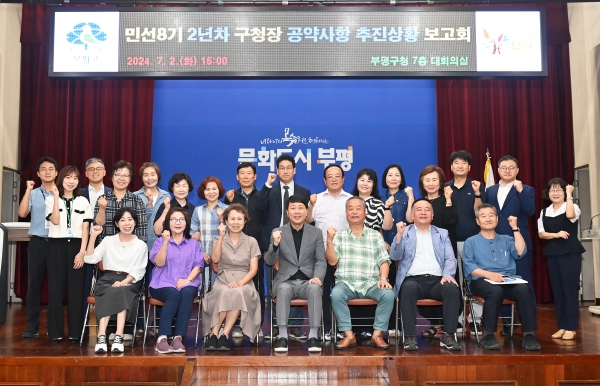 [금요저널] 부평구는 2일 구청 대회의실에서 부평구 공약이행평가단과 공약 추진 소관 국·소·과장이 함께하는 ‘민선8기 2년차 구청장 공약사항 추진상황 보고회’를 개최했다.