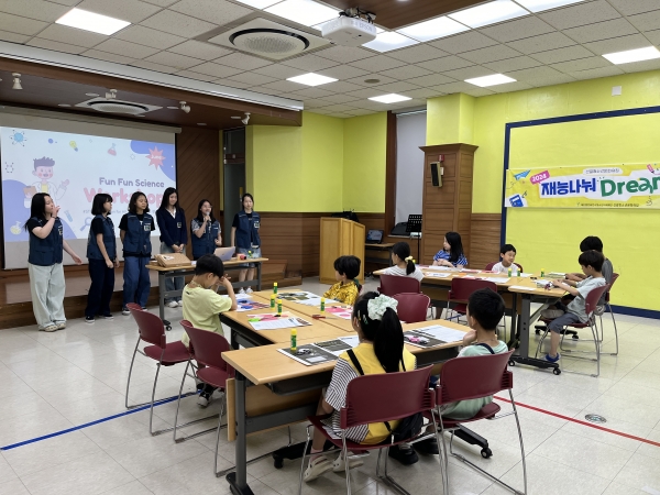 이번 '재능나눠Dream' 2회기 활동은 청소년멘토 Angels 관내 9~10세 청소년 멘티 15명을 대상으로 '영어로 배우는 펀펀과학' 주제로 진행됐다.