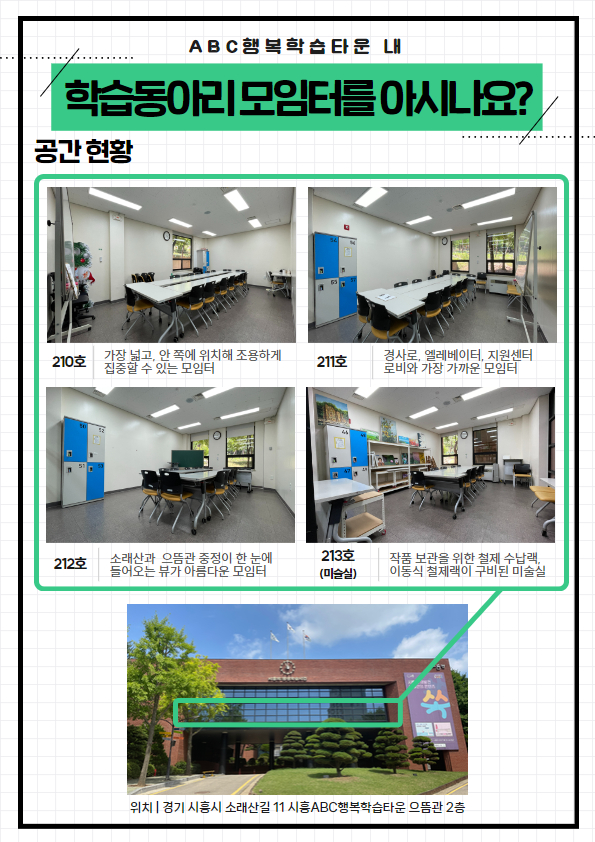 또한, 학습동아리뿐만 아니라 기관과 단체, 시흥시민들도 시흥시 공유플랫폼 ‘시소’를 통해 수시로 대관을 신청할 수 있다.