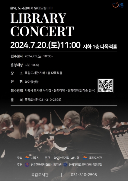 [금요저널] 시흥시 목감도서관은 오는 7월 20일 오전 11시에 다목적홀에서 시민들을 대상으로 도서관 음악회 ‘음악, 도서관에서 읽어드립니다’를 개최한다.