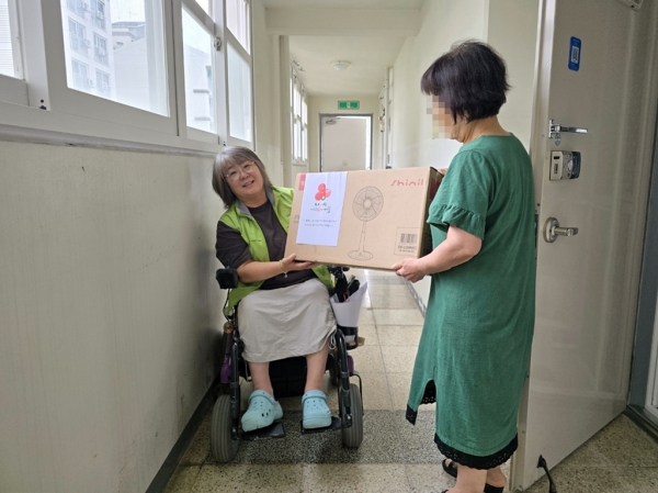 협의체 위원들은 대상 가정을 방문해 선풍기를 전달하며 건강 상태와 주거 환경을 살피고 안부를 확인했다.