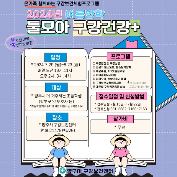 [금요저널] 양주시가 구강보건센터에서 다가올 여름방학을 맞이해 온 가족이 함께 참여할 수 있는 ‘2024년 구강건강 프로그램’을 운영한다고 밝혔다.