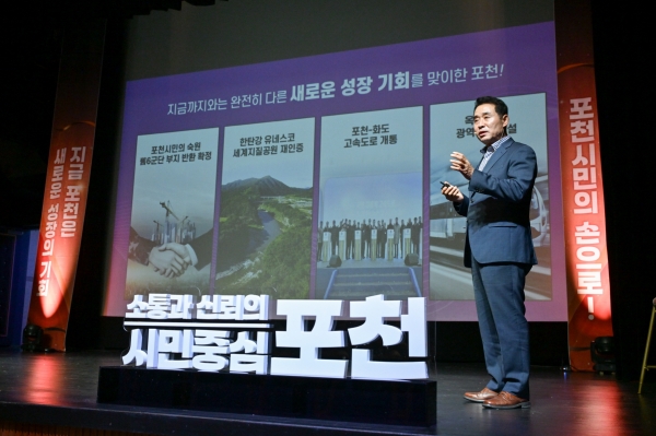 이어 △3대 특구 지정 △GTX-G 노선 신설 △포천-철원 고속도로 건설 △명품 주거단지 조성 △포천천 블루웨이 조성사업 △청성산 종합개발사업 등 핵심 사업계획을 상세히 소개했다.