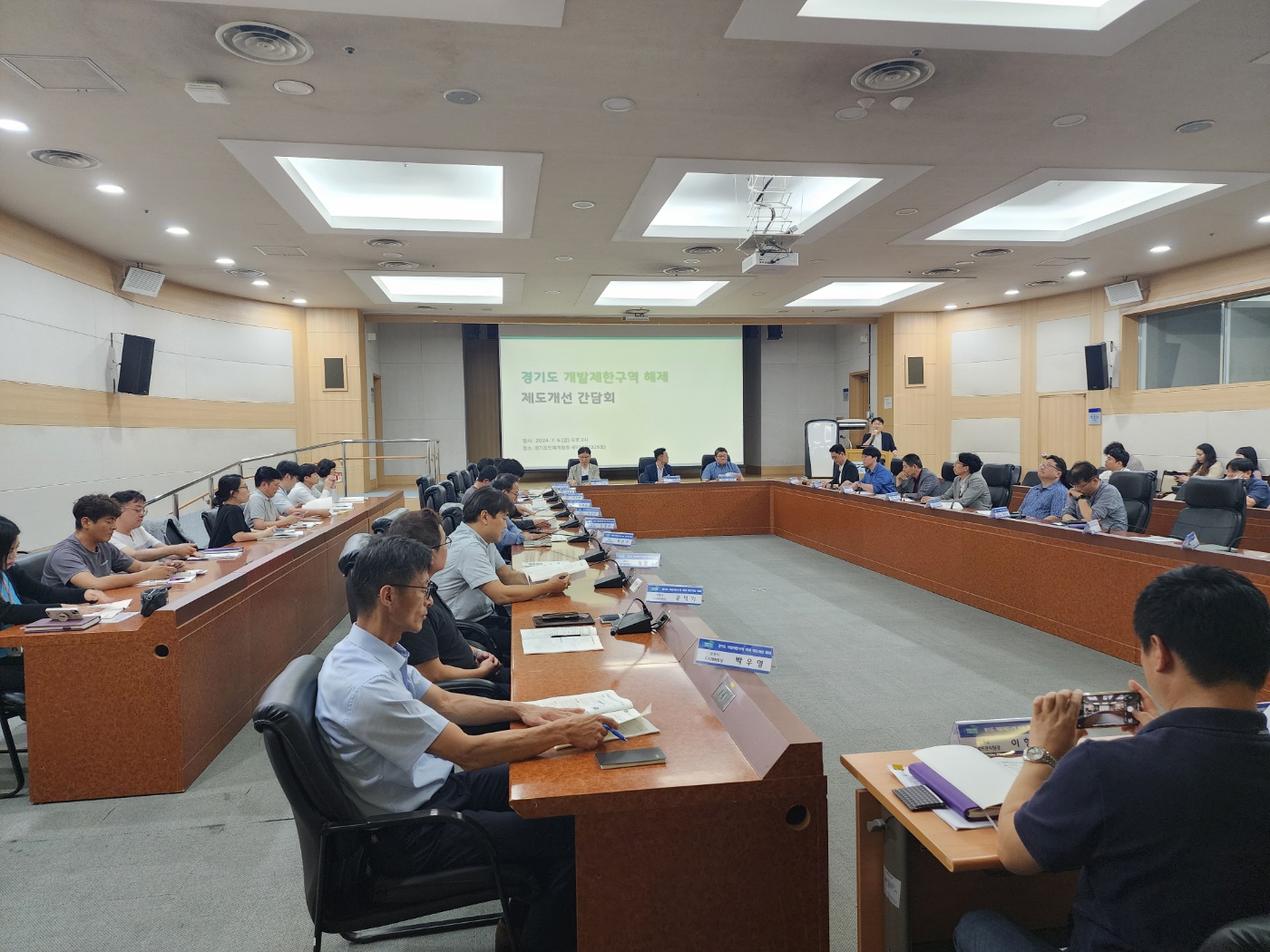 경기도는 5일 경기도인재개발원에서 국토교통부 임정환 서기관, 국토연구원 김중은 박사․유재성 박사, 경기연구원 권진우 박사 등 전문가와 개발제한구역 21개 시군 담당 부서장이 참여한 가운데 개발제한구역(GB) 제도개선 간담회를 개최했다.