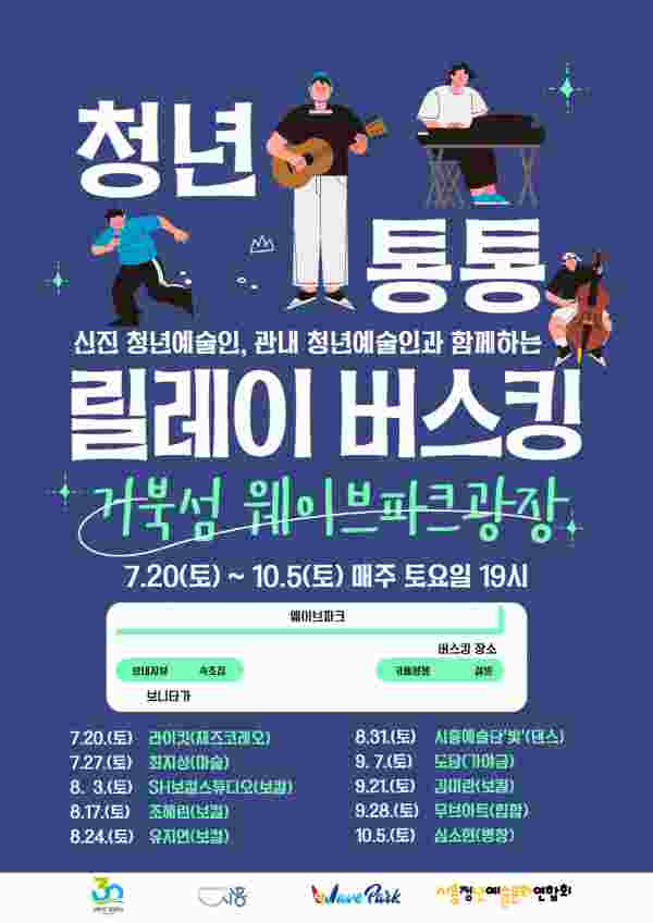 [금요저널] 시흥시는 청년문화 예술 활성화의 일환으로 ‘청년 통통 릴레이 버스킹’을 오는 7월 20일부터 10월 5일까지 매주 토요일 저녁 7시에 거북섬 웨이브파크 광장 일대에서 진행한다.