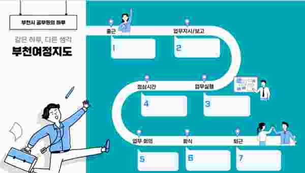 특히 조직문화 개선을 위해 시가 자체 개발한 ‘부천여정지도’는 하루 중 조직과 처음 상호작용하는 출근 순간부터 마무리하는 퇴근 시점까지의 경험을 도식화한 부천형 조직문화 개선 콘텐츠다.