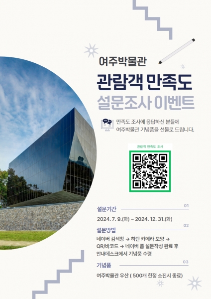 [금요저널] 여주시 여주박물관에서는 7월 9일부터 박물관 서비스 개선을 위한 관람 만족도 조사 이벤트를 개최한다.