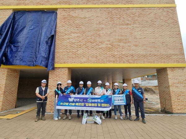 이번 행사에는 양 기관 노동안전지킴이와 관계 공무원 및 수행기관 등 11명이 함께 양주시 연곡초등학교 증축 공사 현장과 의정부시 고산동에 소재한 근린생활시설 및 오피스텔 공사 현장을 방문해 합동점검을 실시하고 생수 나눔 캠페인을 진행했다.