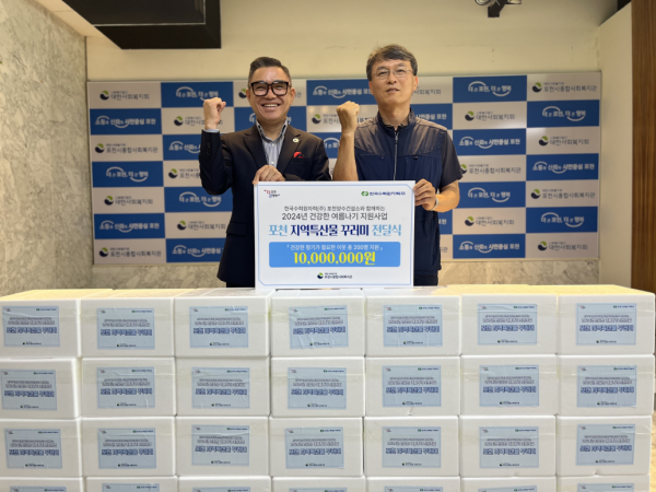 [금요저널] 포천시종합사회복지관은 지난 10일 한국수력원자력 포천양수건설소가 취약계층 이웃의 ‘포천 특산물 꾸러미’ 지원을 위한 이웃 돕기 성금 1천만원을 기탁했다고 전했다.