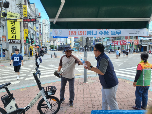 이 사업은 관내 주요 그늘막 32개소에 비치한 아이스박스에 얼음생수를 보급하고 시민들에게 나눠주는 사업으로 배부 및 폭염 국민행동요령안내 등에는 이천시 자율방재단 협업해 추진하며 폭염특보가 발표되면 추진하는 사업이다.