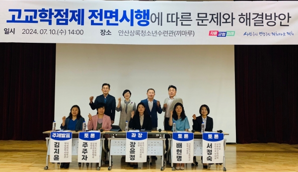 [금요저널] 장윤정 경기도의회 교육기획위원회 위원이 좌장을 맡은 ‘고교학점제 전면시행에 따른 문제와 해결방안’토론회가 7월 10일 안산상록청소년수련관 끼마루에서 개최됐다.