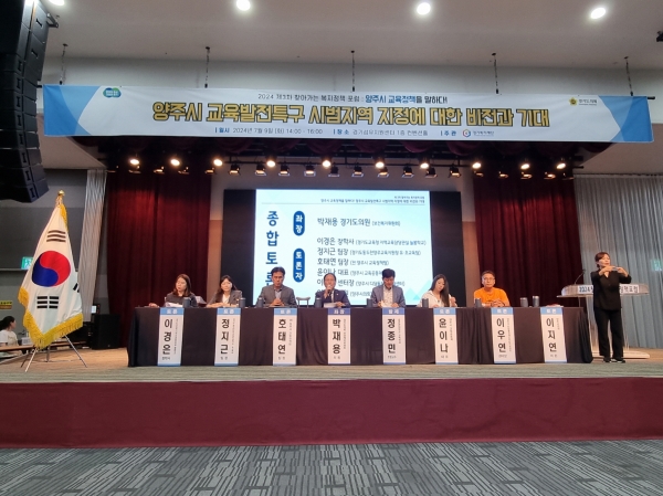 토론회에서는 정성호 국회의원, 김동연 경기도지사, 임태희 교육감, 염종현 의장, 김정민 양주시 부시장이 축사를 통해 양주시 교육 발전을 위한 응원 메시지를 보냈으며 박재용 경기도의원이 좌장을, 성균관대학교 정종민 초빙교수가 발제를, 양주시의회 이지연 의원, 경기도교육청 지역교육담당관실 이경은 장학사, 경기도동두천양주교육지원청 정지근 팀장, 양주시 호태연 팀장, 양주시 교육공동체 윤이나 대표, 양주시 디딤돌장애인자립지원센터 이우연 센터장이 토론자로 나서 의견을 나누었다.