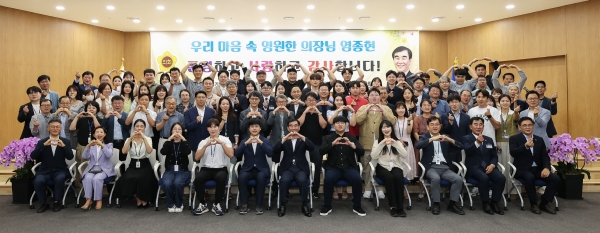 염 의장은 이어 “인생은 끊임없는 선택의 연속이고 여러분이 근무하는 곳과 맡은 업무 또한 본인의 선택 중 하나일 것”이라며 “업무를 수행하는 과정에서 역경도 있겠지만 좌절하지 않고 다시 나아갈 수 있는 용기를 갖고 의회 위상을 높이는 데 힘써달라”고 격려했다.
