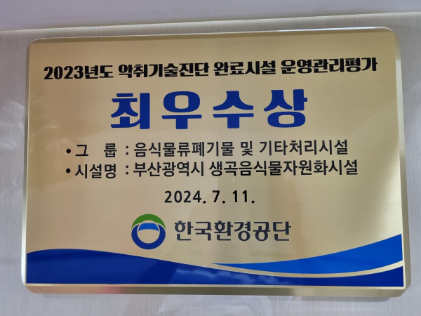 [금요저널] 부산시와 부산환경공단은 ‘생곡음식물자원화시설’이 한국환경공단에서 실시한 2023년도 악취기술진단 완료시설 운영관리 평가에서 최우수상을 받았다고 밝혔다.