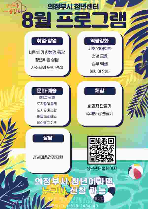[금요저널] 의정부시 청년센터 청년공감터는 7월 18일부터 8월 프로그램에 참여할 청년을 모집한다.