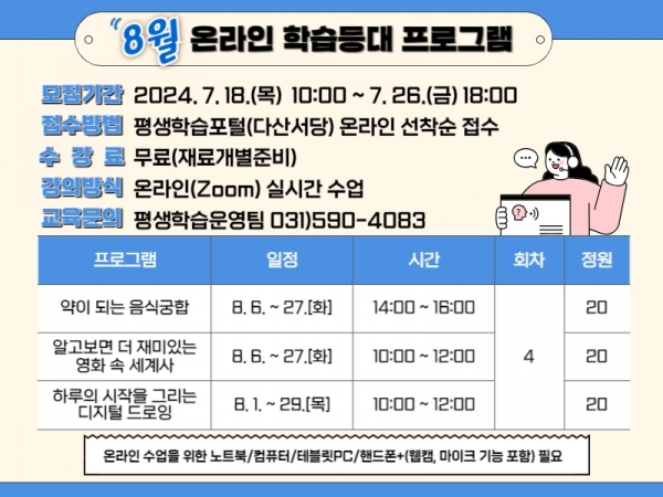 남양주시, 온라인 평생학습 8월 강좌 수강생 모집