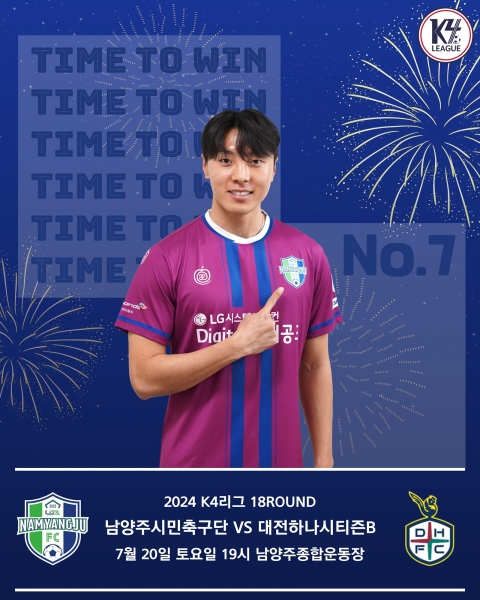[금요저널] 남양주시민축구단이 오는 20일 오후 7시 남양주종합운동장에서 대전하나시티즌 B팀 상대로 K4리그 18라운드 경기를 치른다.