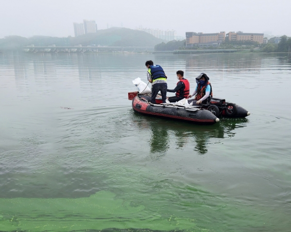 시 관계자는 “장마 후 9월 초까지 폭염이 지속될 수 있는 만큼 녹조 발생을 억제할 수 있도록 당분간 예찰 횟수를 늘리고 녹조 제거제를 살포하는 등 방제 조치를 이어가겠다”고 말했다.