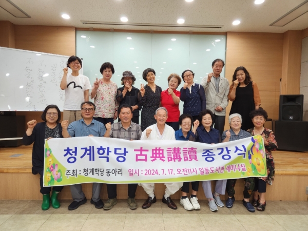 18년간의 여정을 마치는 이번 종강식에는 김경인 일동면장과 유태희 청계학당 회장 등 수강생 15명이 참석했다.