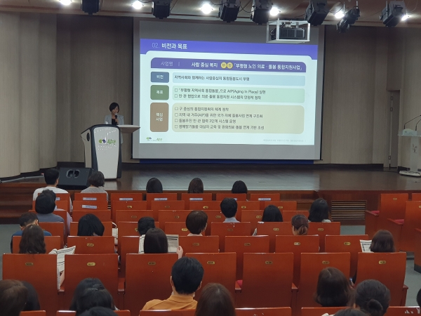 또한, 구는 사업추진 발표에 앞서 ‘의료·요양 등 지역 돌봄의 통합지원에 관한 법률’ 제정에 따라 현재 통합돌봄사업이 나아가는 방향에 대해 최재우 국민건강보험공단 통합돌봄연구센터 연구위원의 강연을 진행했다.
