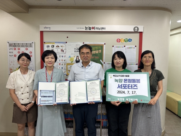 [금요저널] 의정부시 녹양동주민센터는 눈높이러닝센터 녹양학원과 ‘녹양 온정돌봄 서포터즈’ 업무협약을 맺었다고 18일 밝혔다.