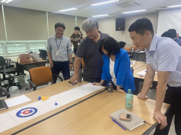 이날 교육은 재단 관리자들의 업무 스트레스 해소 및 정서 안정을 통해 행복한 일터를 구현하기 위해 실시됐으며 실내기반 팀 빌딩 활동으로 지그재그 컬링, 협동 컵 쌓기 등 직원들의 소진을 예방하는 시간을 가졌다.
