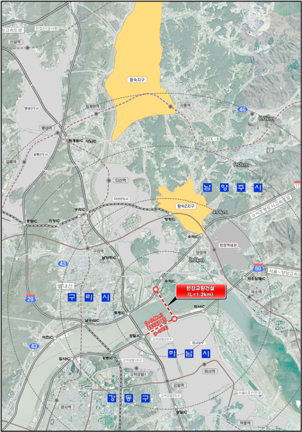 앞서 수석대교는 정부의 ‘3기 신도시, 선 교통·후 입주’ 정책 실현을 위해 2020년 12월 왕숙 신도시 광역교통개선대책으로 확정됐으나, 그간 하남시는 미사강변도시 선동IC 인근 교통정체를 이유로 수석대교 건설을 반대해 왔다.