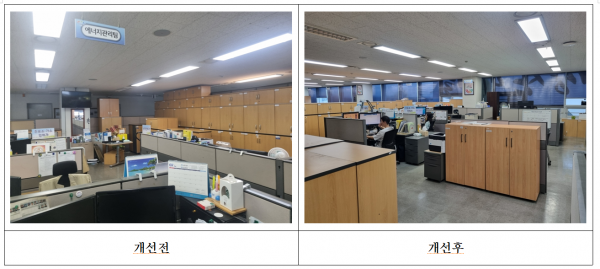 부서마다 차이가 있지만 예를 들어 기업경제과와 일자리정책과는 업무가 상호 연결되는 부분이 많은데 사무실이 확 트이다 보니 민원인 입장에서는 한 번에 민원을 해결할 수 있고 공무원 입장에서도 유기적인 협력이 가능해졌다고 보인다면서 공무원들이 직접 나흘 동안 예산을 들이지 않고 공간 창출을 하다 보니 너무 힘들었지만, 민원인을 위한 쾌적한 공간 재구성으로 다양한 민원 서비스를 제공할 수 있다고 생각하니 마음이 편해졌다고 했다.