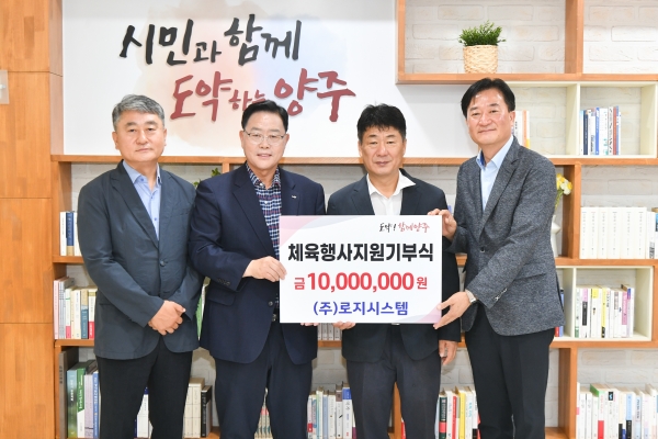 이날 ㈜로지시스템은 전달한 기부금은 1천만원으로 지원된 기부금은 양주시체육회가 주관하는 하반기 행사 등을 위해 사용될 예정이다.