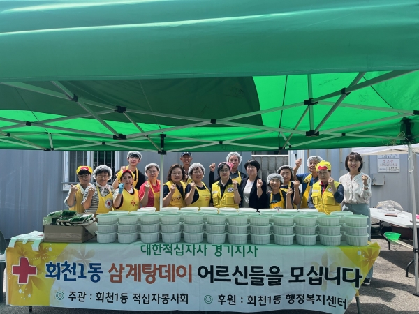 [금요저널] 양주시 회천1동 적십자봉사회에서 지난 15일 관내 저소득가구 100여명에게 초복 맞이 ‘사랑의 삼계탕’을 직접 만들어 전달했다.