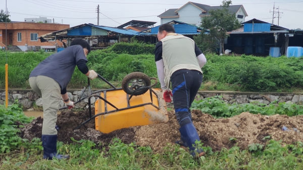 이번 수해복구는 용인시 자원봉사단체, 재난·재해자원봉사단, 2030용인청년봉사단 40여명과 함께 인구 감소지역인 논산시의 수해 현장 일손 부족 해소와 신속한 수해 현장의 복구를 위해 피해를 입은 딸기 하우스 농가의 토사물 및 진흙 제거 활동을 전개했으며 실의에 빠진 농가들이 속히 일상생활 복귀를 염원하는 마음으로 구슬땀을 흘리며 일손을 도왔다.