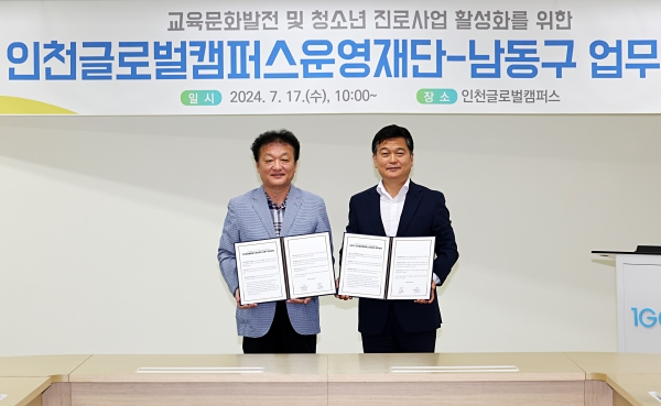 [금요저널] 인천시 남동구는 최근 인천글로벌캠퍼스운영재단과 교육문화 발전과 청소년 진로 지원을 위한 업무협약을 체결했다고 19일 밝혔다.